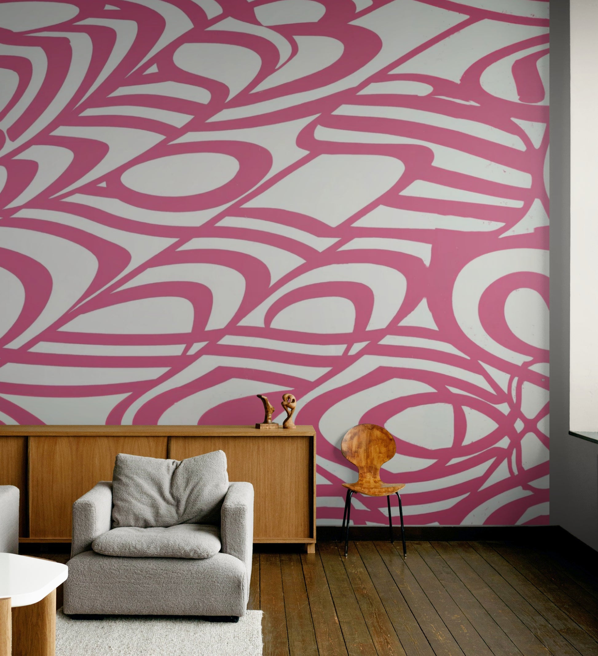 A bold and groovy wallpaper with a playful pink design that adds a touch of retro chic to any room, named after a woman who's never afraid to make a statement.