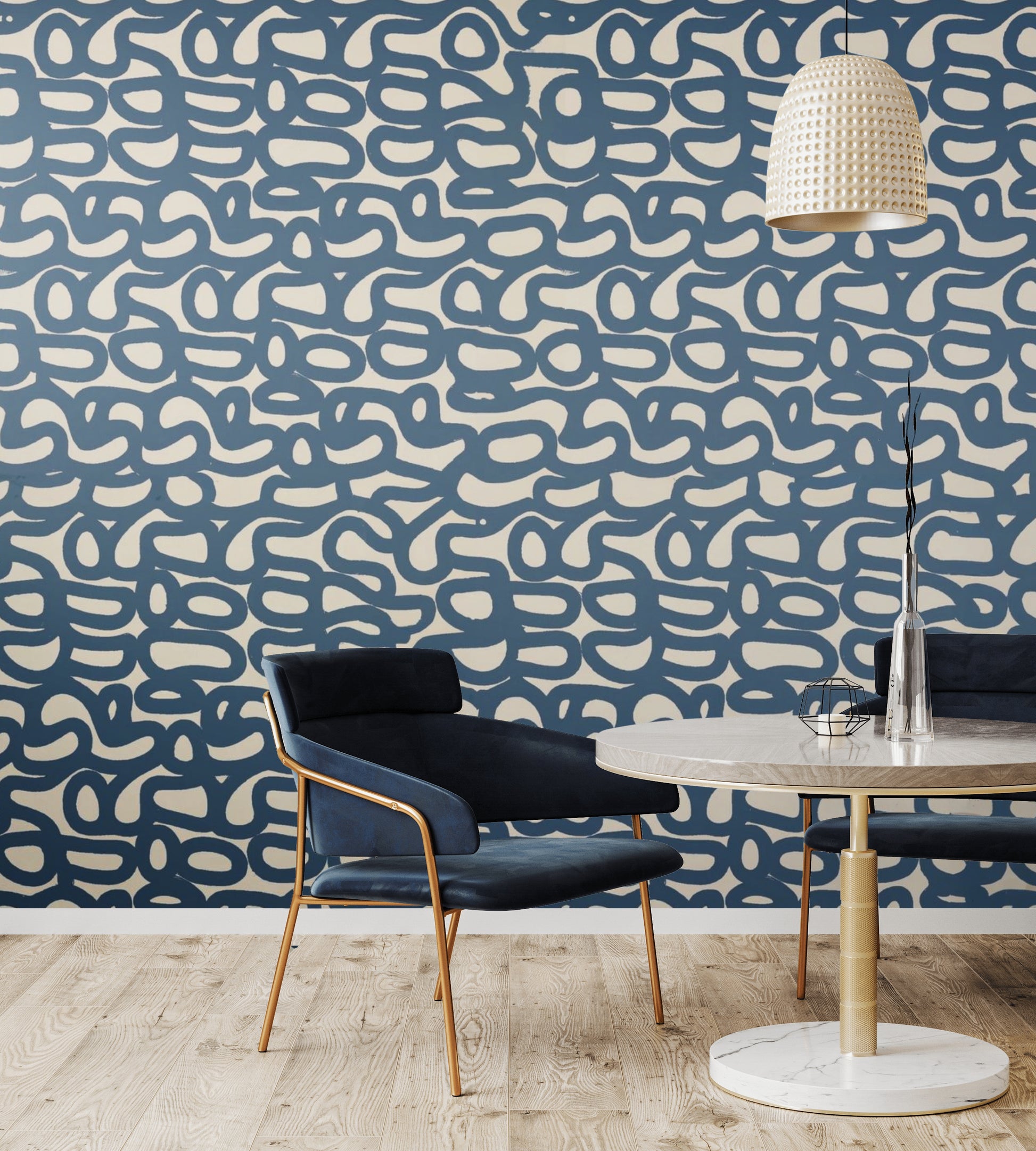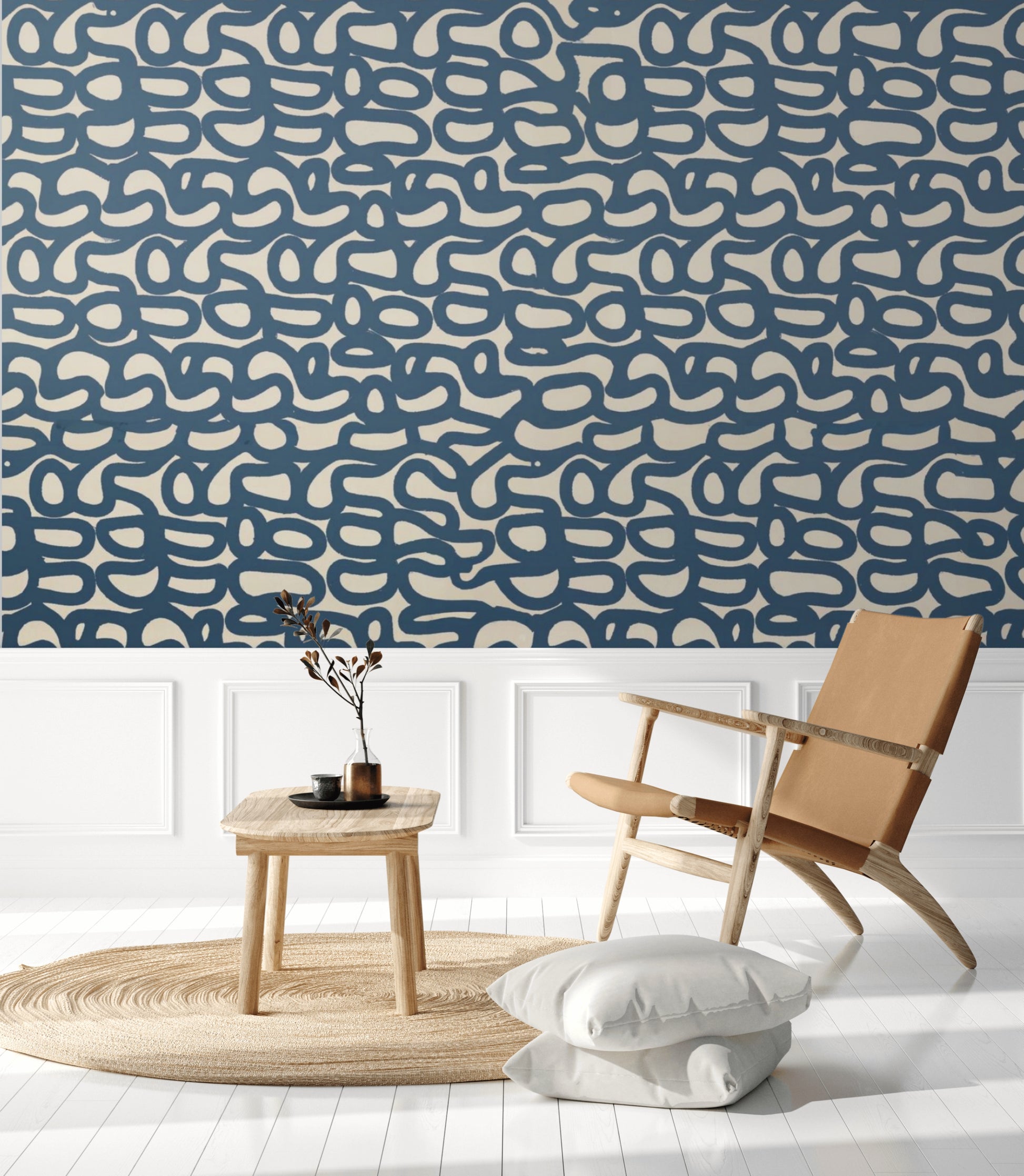 A simple dance of blue and cream colors, drawing you in with its effortless movement and timeless sophistication.