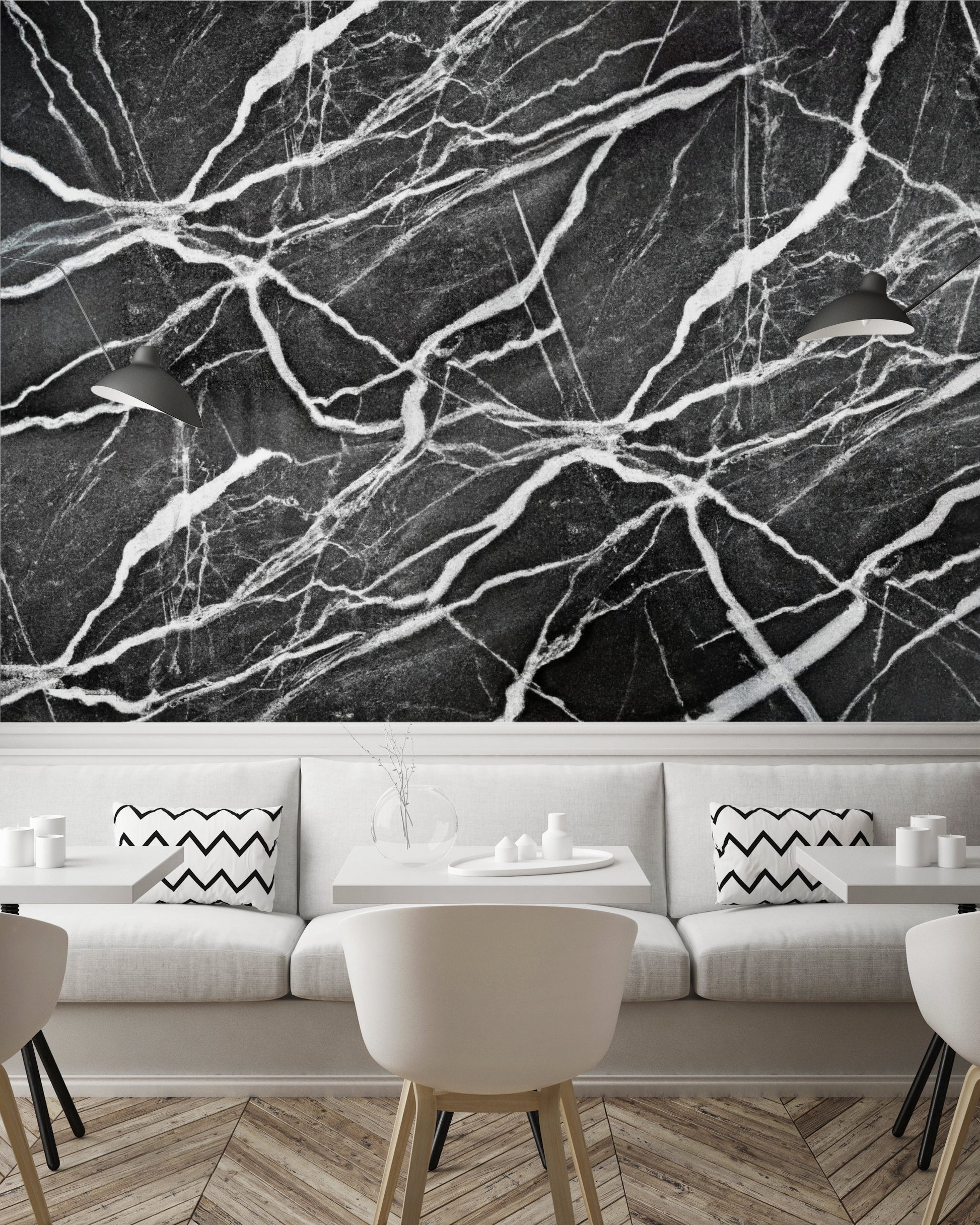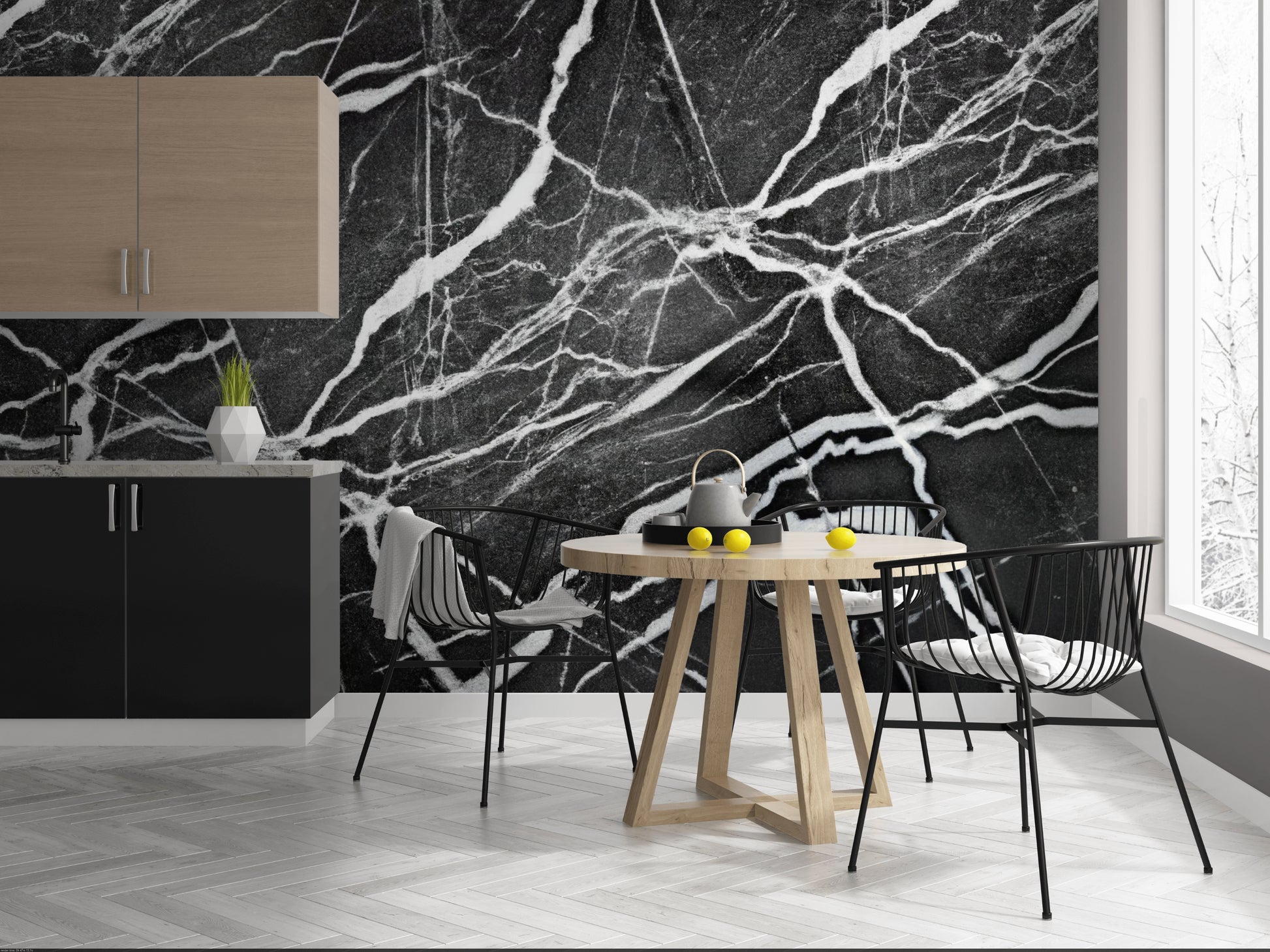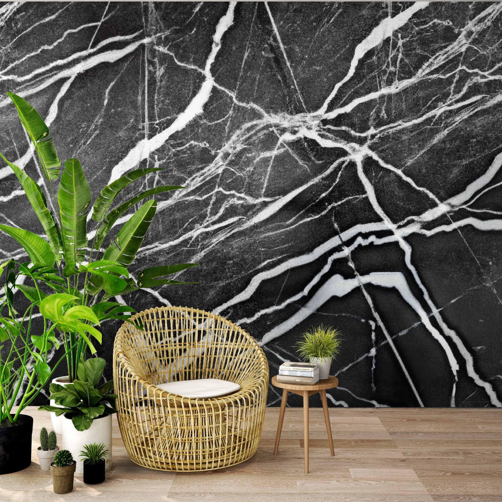 Immerse your space in the timeless allure of our Grand Antique Marble wallpaper. This pattern captures the essence of the famous opulent French marble with its deep black canvas adorned by bold, white accents. Thick, veiny marbling creates an intricate dance of light and shadow, evoking a sense of sophistication and grandeur.