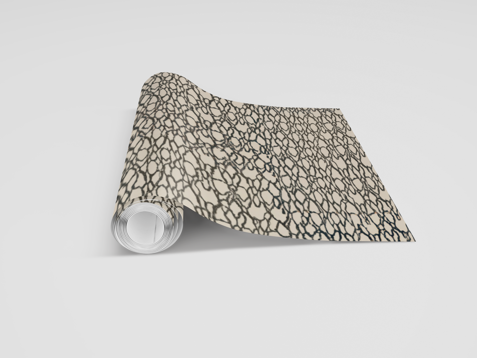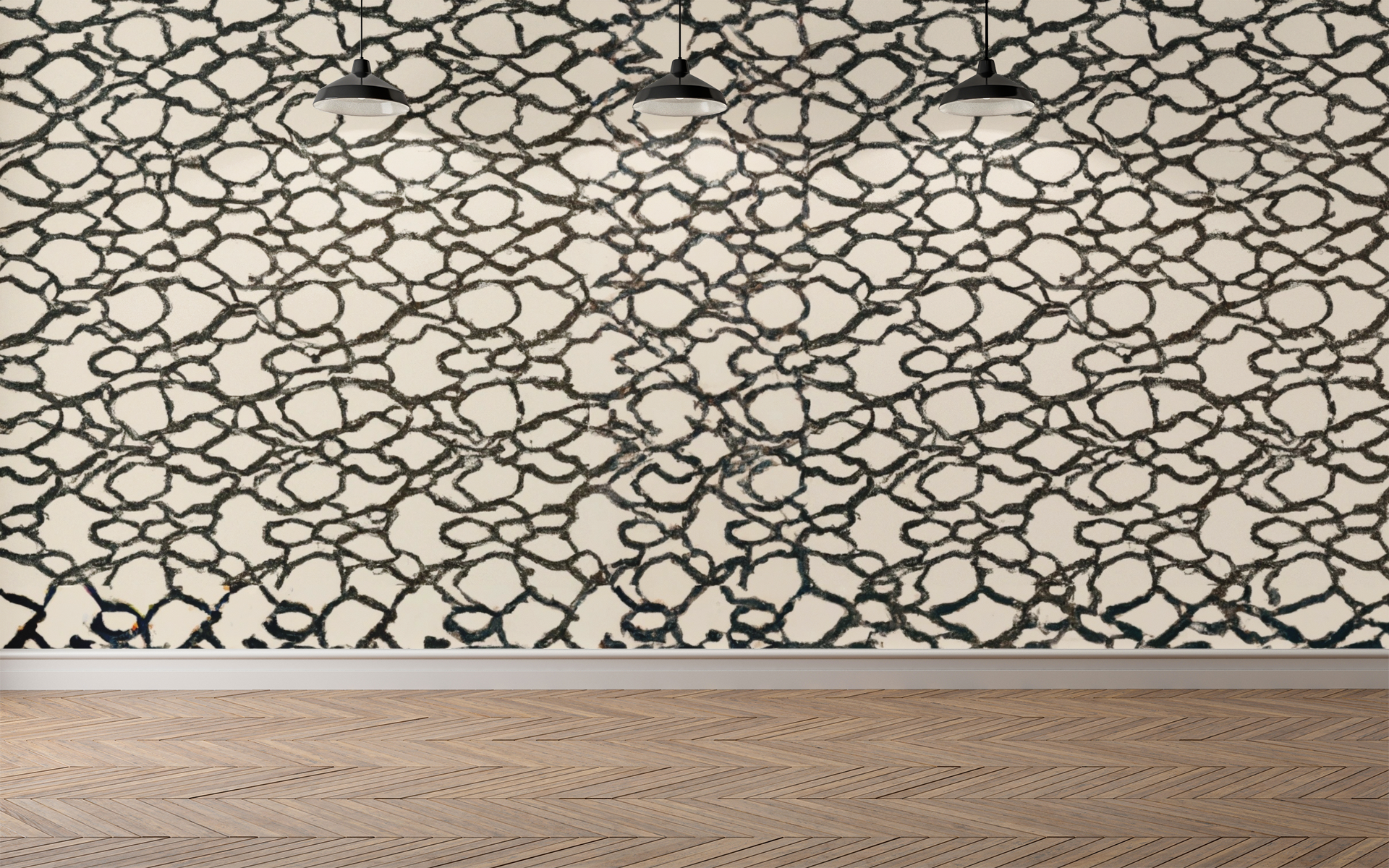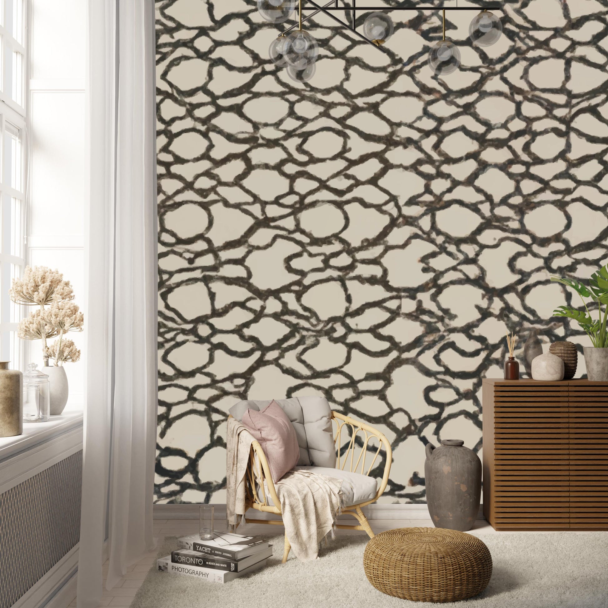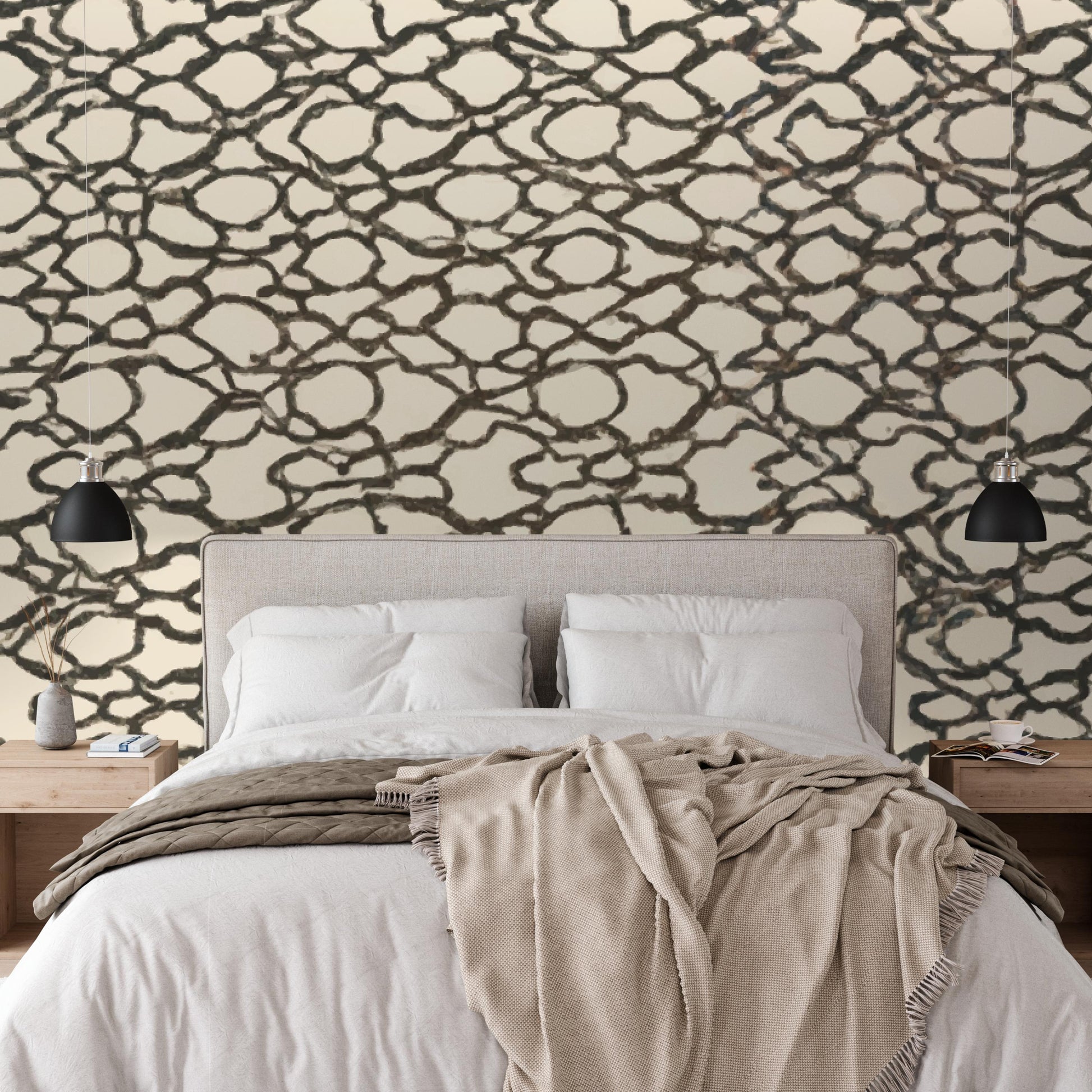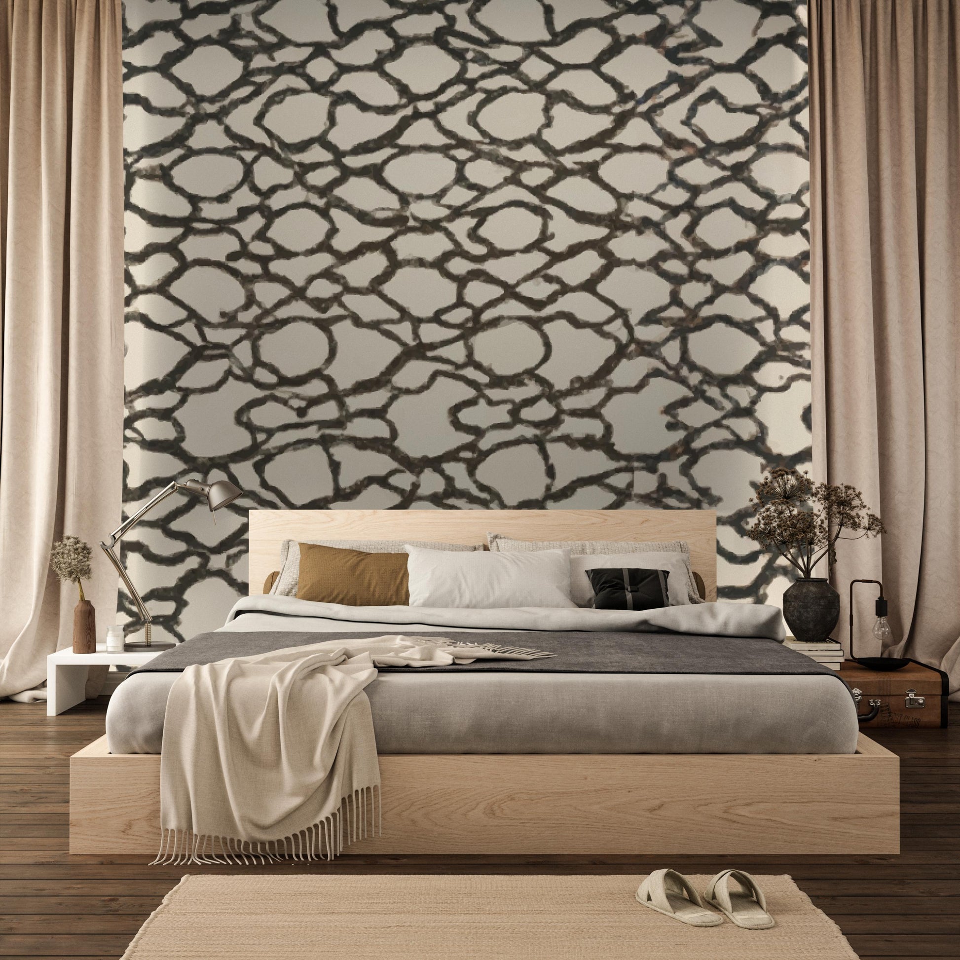 Graphite evokes a sense of mysterious allure with its edgy, pencil-like scribble pattern and calming sand color palette.