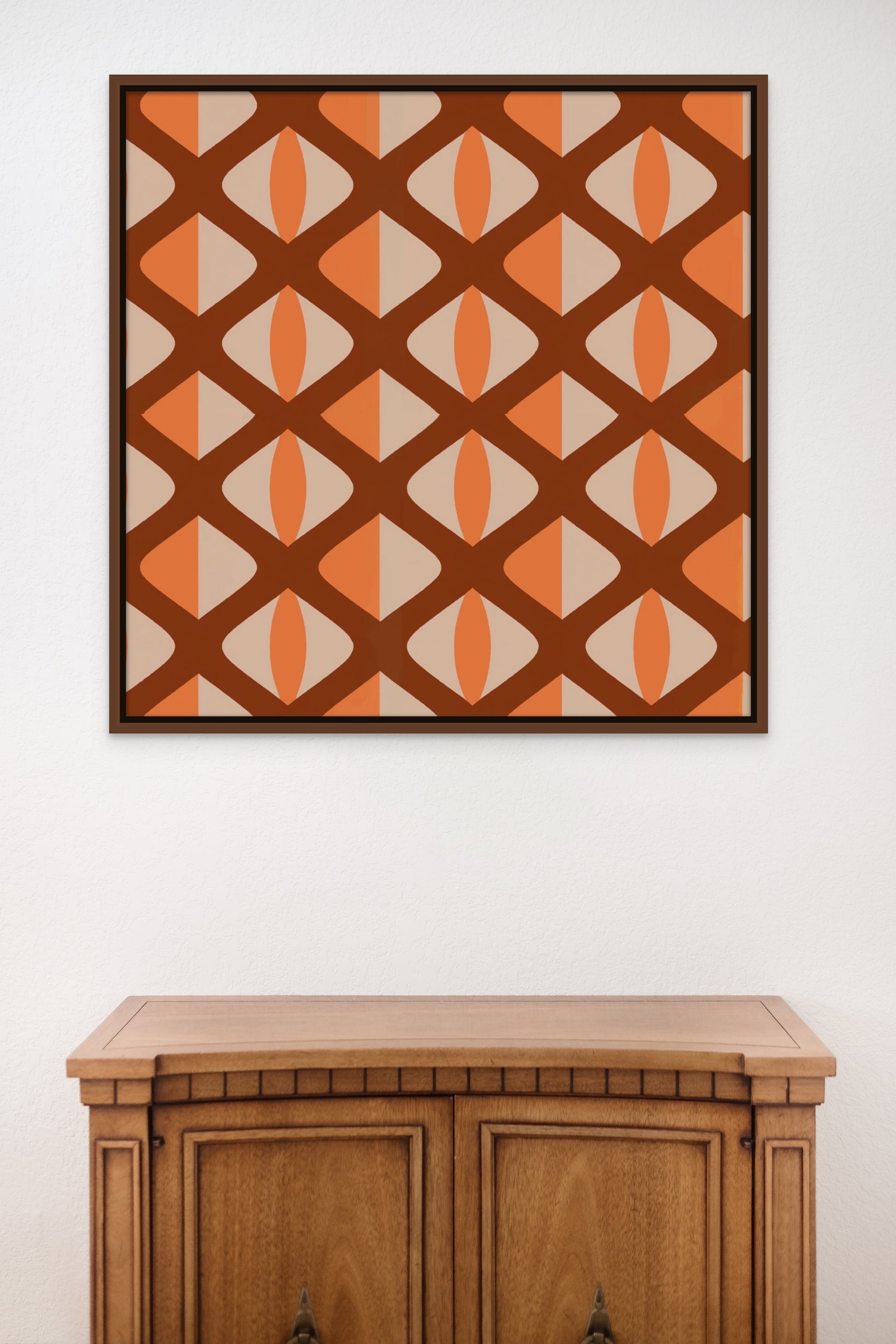 With a subtle yet striking lattice pattern in a warm palette of tan, coral, and brown, Joan exudes a retro 70s vibe that's both timeless and alluring.