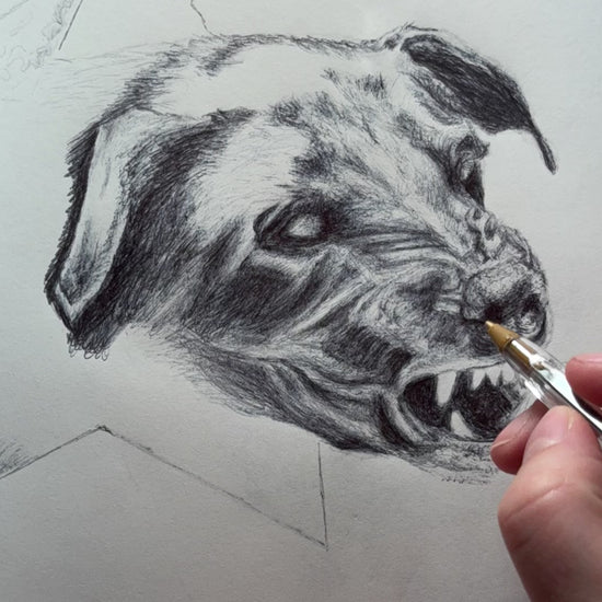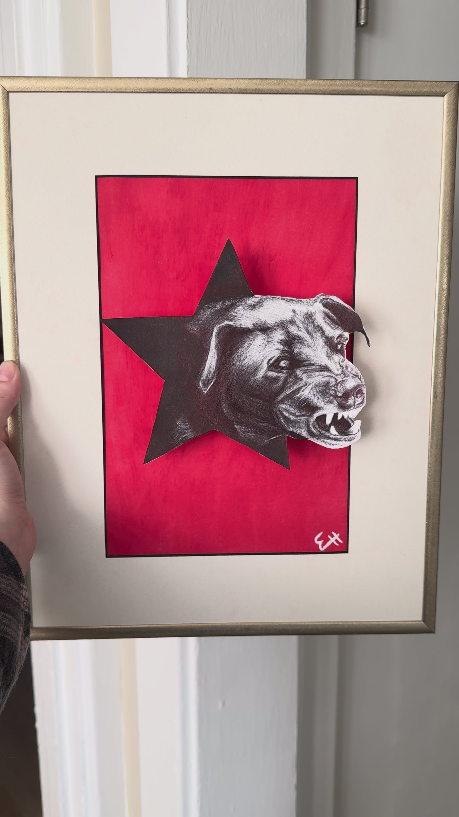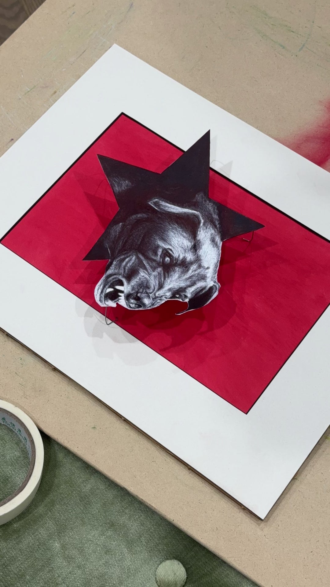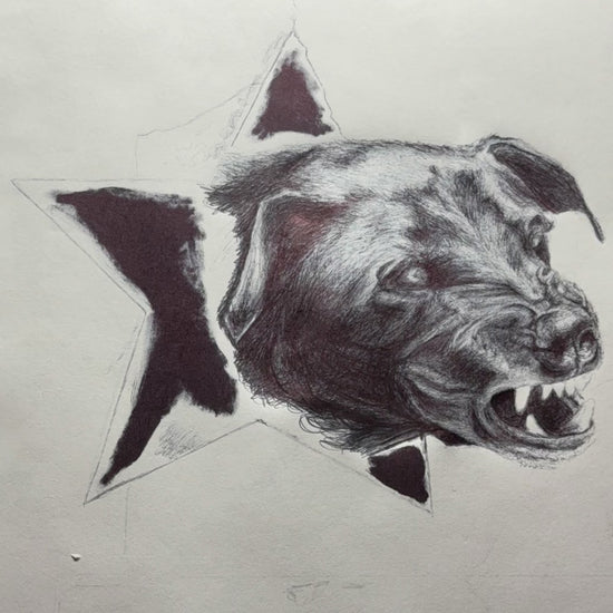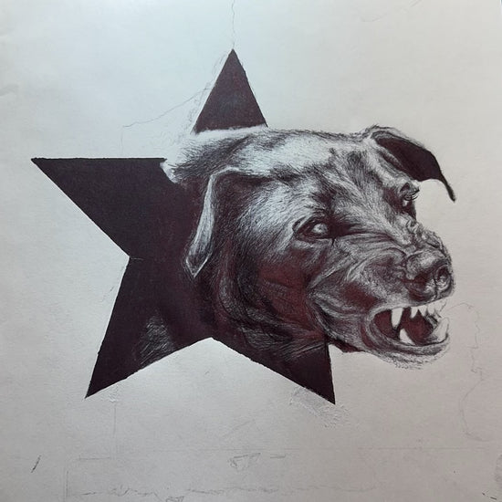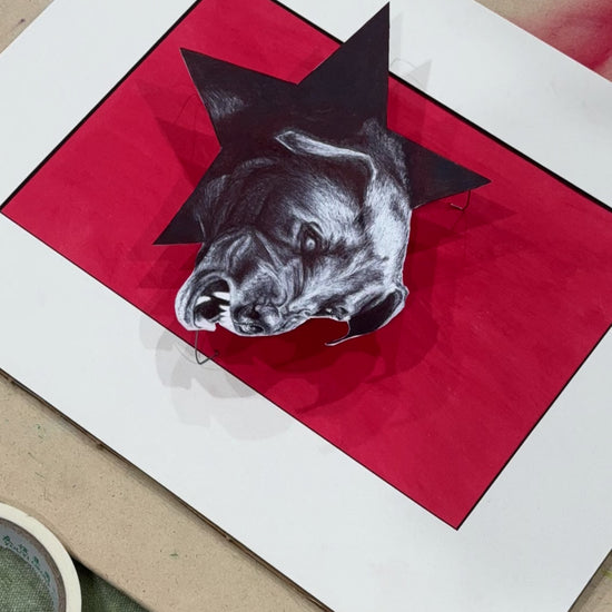 This artwork is built, not just drawn. The dimensional lift creates shifting shadows as the light changes, giving the dog a presence that feels alive. It’s part illustration, part sculpture — a museum-style object created in a quiet, detailed, meditative process.