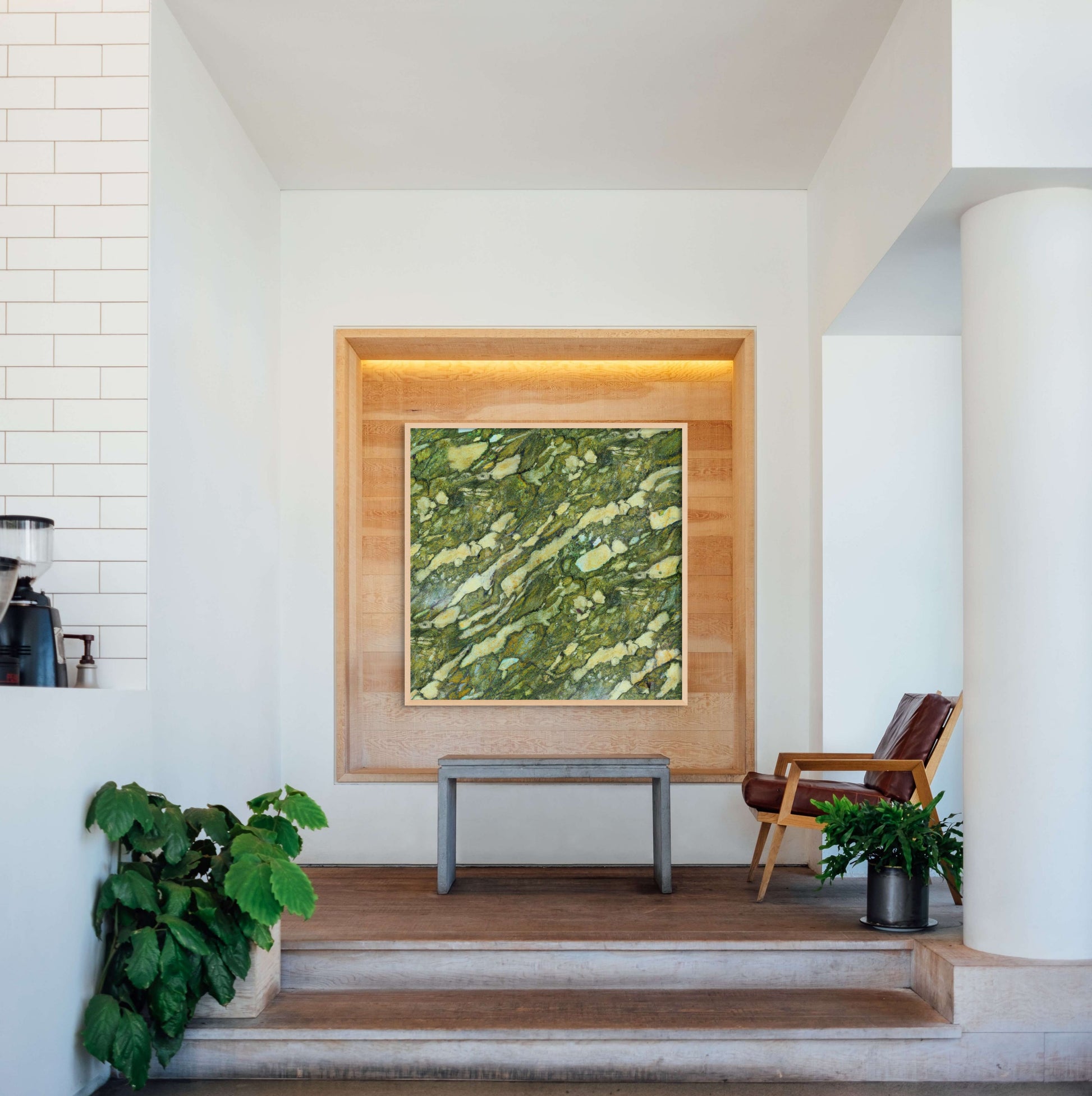 Immerse yourself in tranquility with our Rainforest Green Marble wallpaper, inspired by the timeless beauty of marble from India. This captivating creation boasts soothing pear green tones paired with creamy accents, highlighted by delicate dark green veining that echoes the harmony of nature within an ancient rainforest. The gentle, circular marbling patterns evoke a sense of calm and sophistication, transforming any space into a serene sanctuary.