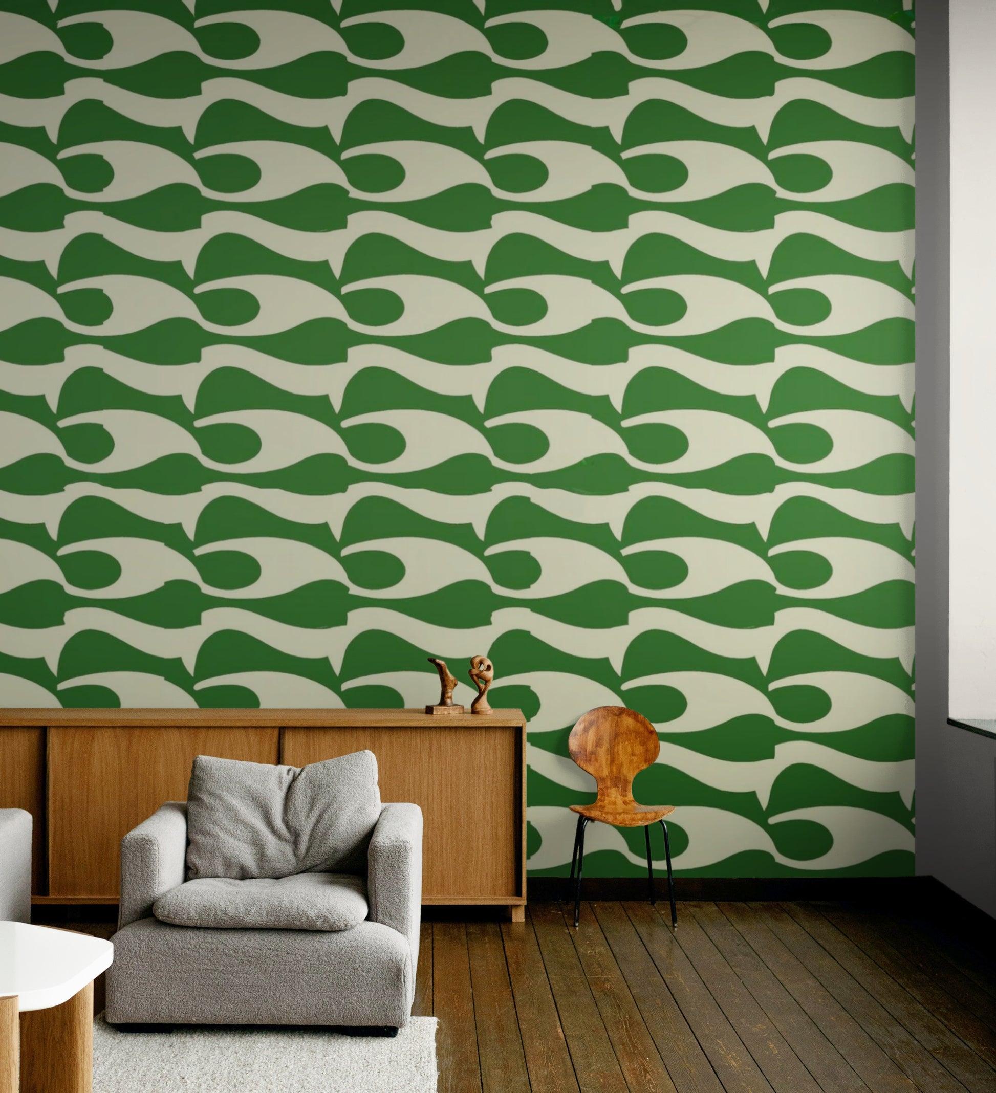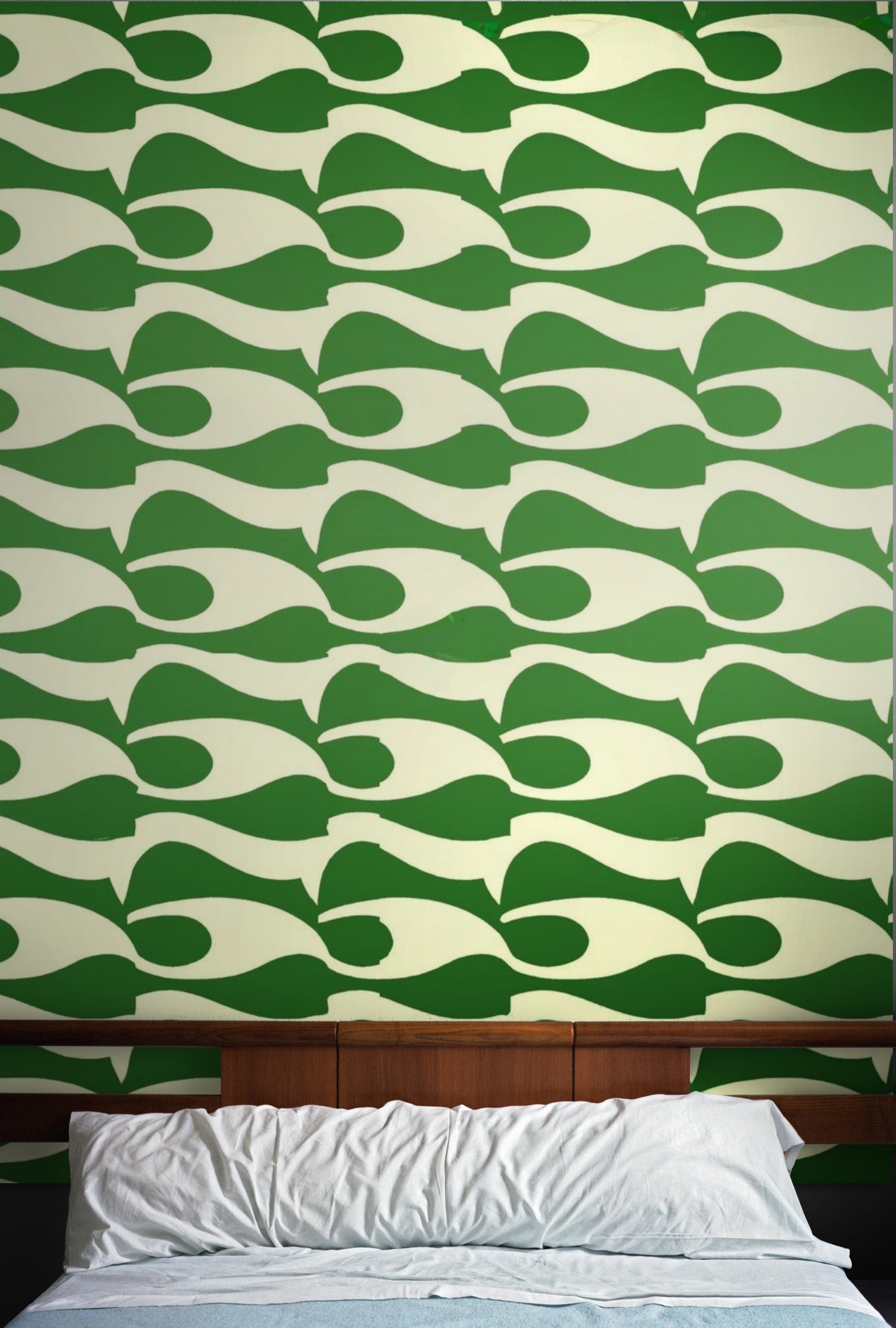 Sloane's soothing yet energetic green and cream pattern flows like gentle waves, adding subtle movement to your space.