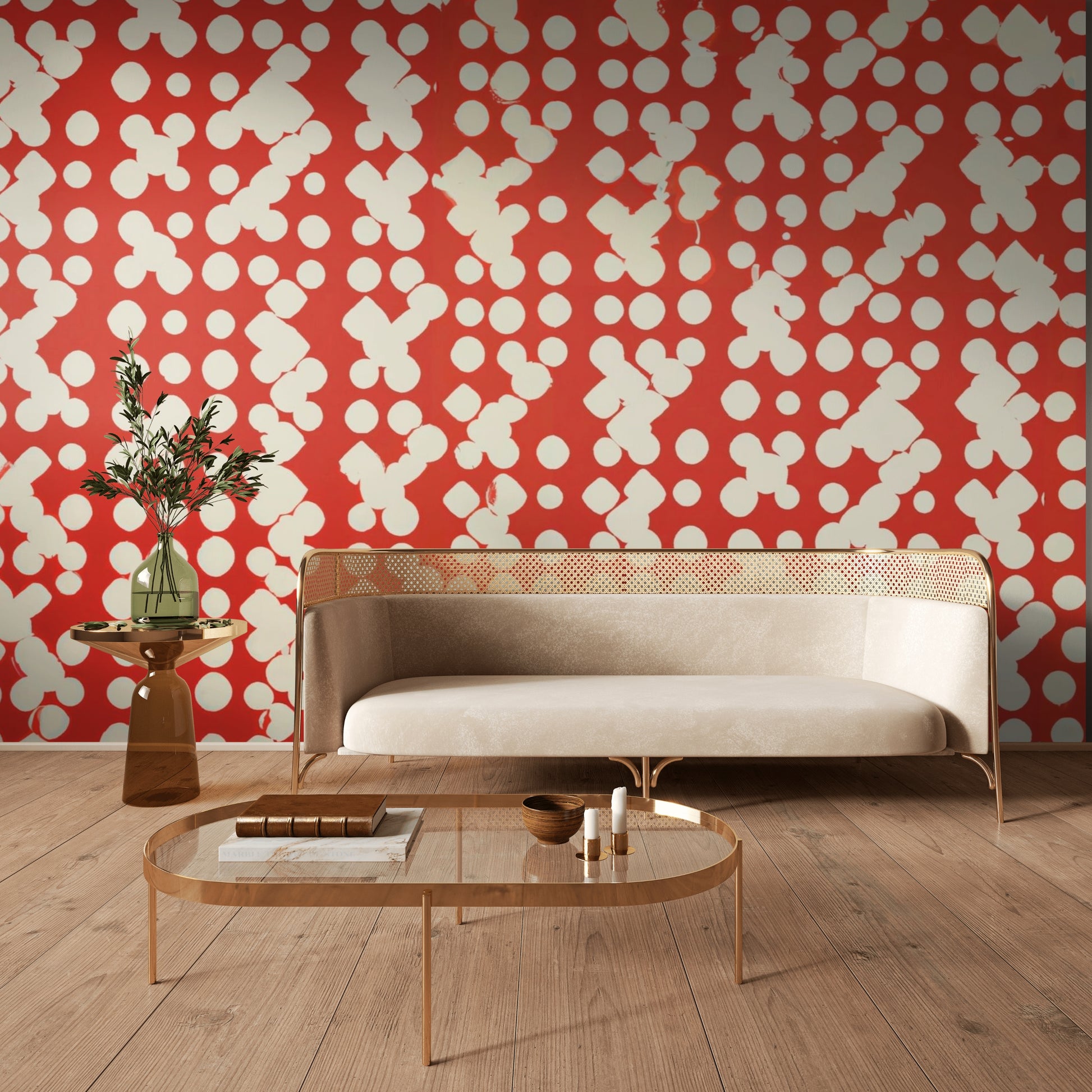 Add a burst of cheer to your space with Sophie, a vibrant red wallpaper with playful white dots, named after a woman who embodies the joy of life!